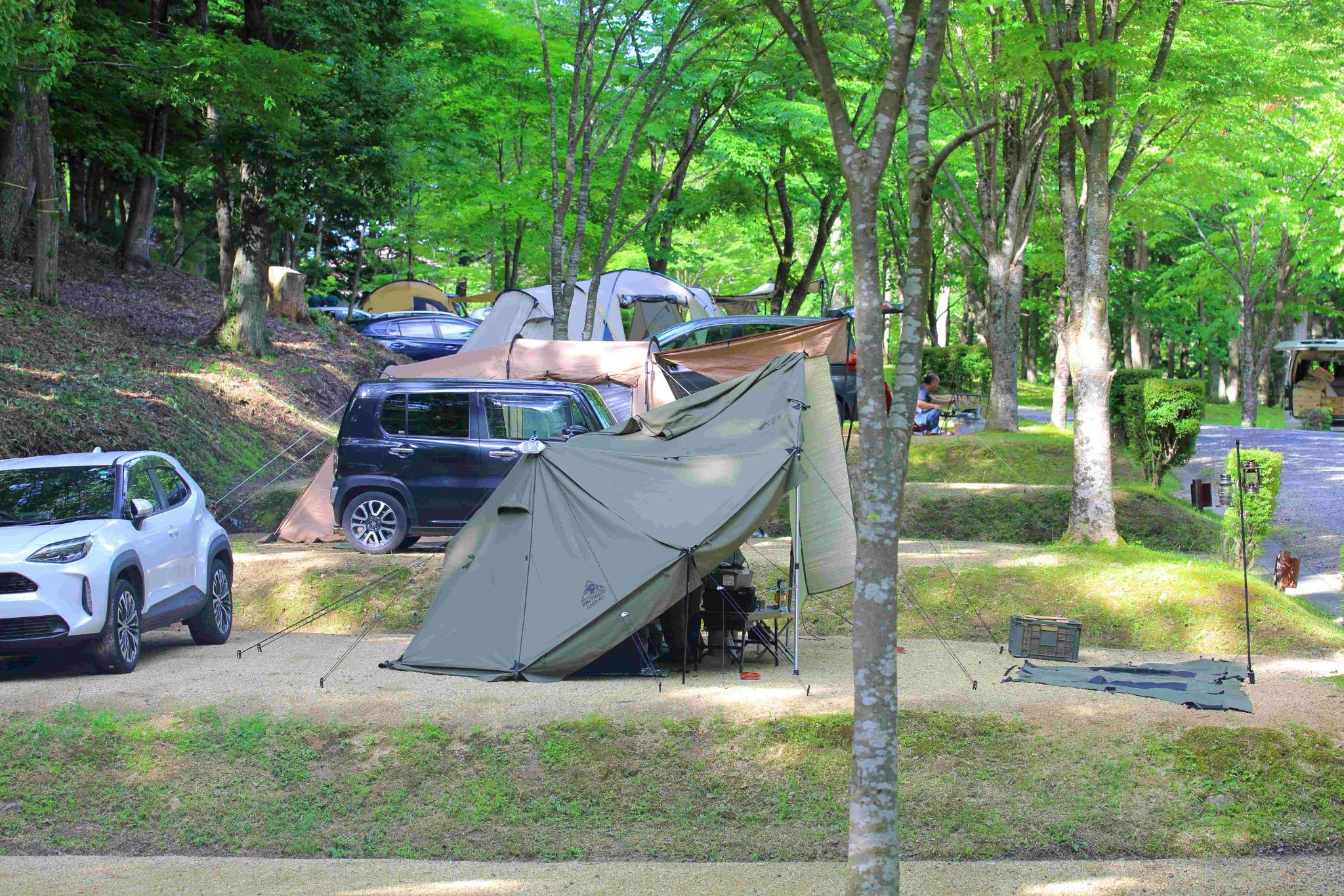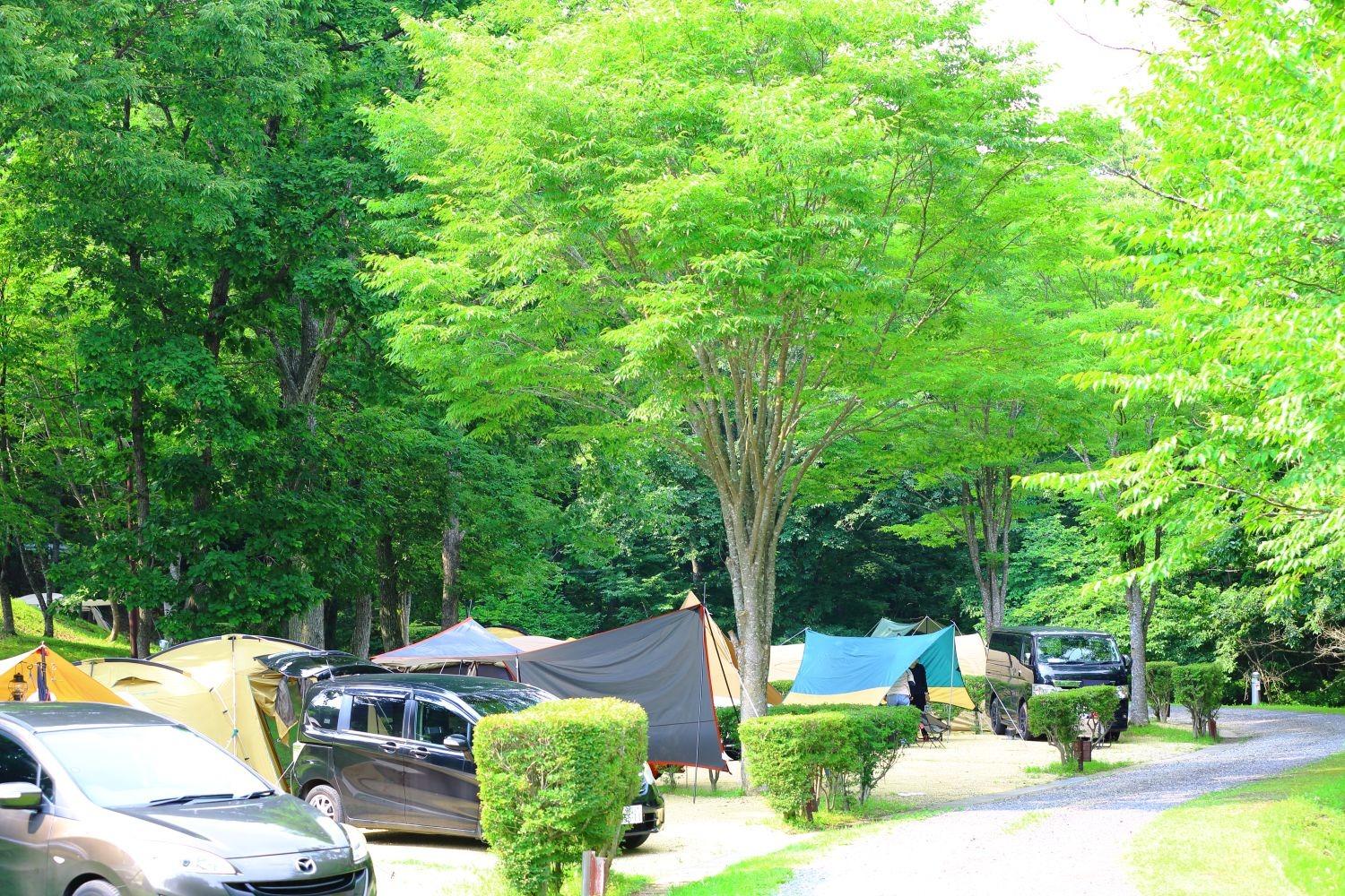 ミズナラ・コナラの自然林に囲まれ、羽鳥湖高原の澄んだ空気と静けさを満喫できるオートキャンプ場です。自然の中でのびのびとアウトドアを楽しみながらも、快適に過ごせる環境が整っています。 テントやタープ、BBQ用品などのキャンプ用品はレンタルで一式そろい、テント設営・撤収サービスもあるため、キャンプ初心者やファミリー、手ぶらでの利用にもおすすめです。キャンプインストラクター資格を持つスタッフが常駐しており、アウトドアが初めての方でも安心してご相談いただけます。 場内には3か所のサニタリー棟を設置し、いずれもサイトから近く、温水洗浄・暖房便座や給湯付きキッチンを備えた快適仕様。幼児用から大人用まで揃うレンタサイクルで、羽鳥湖周辺を巡るサイクリングも人気です。 周辺には、中世英国の街並みを再現した「ブリティッシュヒルズ」や、温泉・レストラン・自然体験が楽しめる「エンゼルフォレスト那須白河」など観光スポットも充実。キャンプと観光を組み合わせた高原ステイをお楽しみいただけます。