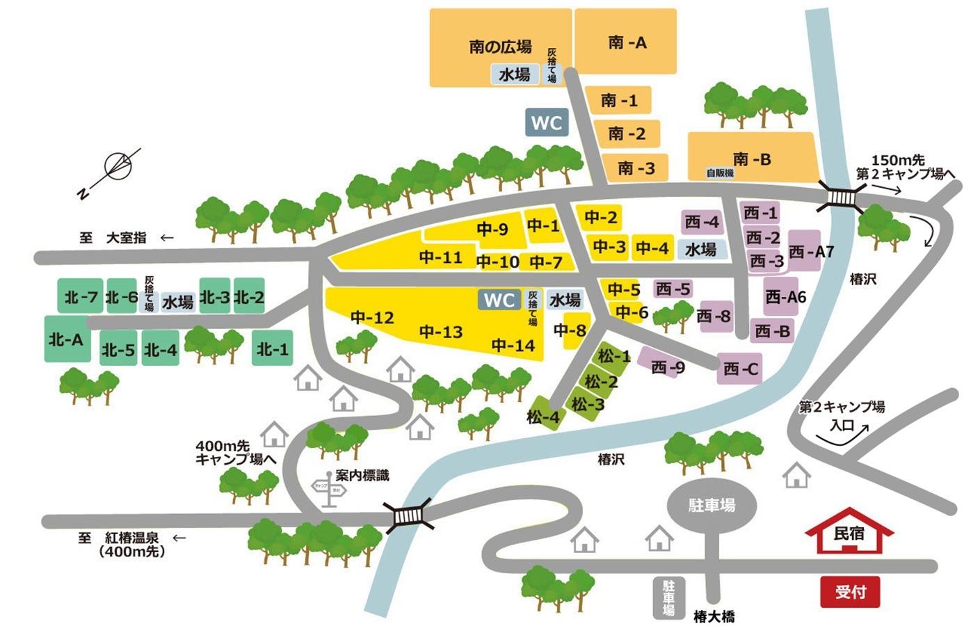 ★椿荘オートキャンプ場の特徴・魅力★ ①ロケーションが豊富で好みにあわせたキャンプができます。(落ち着いた雰囲気の林間サイト、せせらぎが心地よい沢沿いサイト、広々と開放的な高台サイトなど) ②自然の地形を生かしたサイト設計をしているため、各サイトはお隣とも適度な高低差がありプライベート感が高めです。 ③東京から90分という好立地にありながら、綺麗な空気に澄んだ空、美しい椿沢の清流、場内に広がる奥深い森林と癒しの要素が揃っています。 ≪第一キャンプ場≫ 中央の森、北の森、南の森、西の森、松の森の5つのエリアからなり、木々に囲まれた大小様々な林間区画サイトが広がります。 各エリアには炊飯場やお手洗いも整備し、どのサイトからも手軽にアクセスできます。 ≪第二キャンプ場≫ 一つ一つの区画が広いため、テントやタープのレイアウトも比較的自由にできます。 開放感のある広々としたエリアは見晴らしが良好で、晴れた日には夜空いっぱいに輝く満天の星空をお楽しみ頂けます。