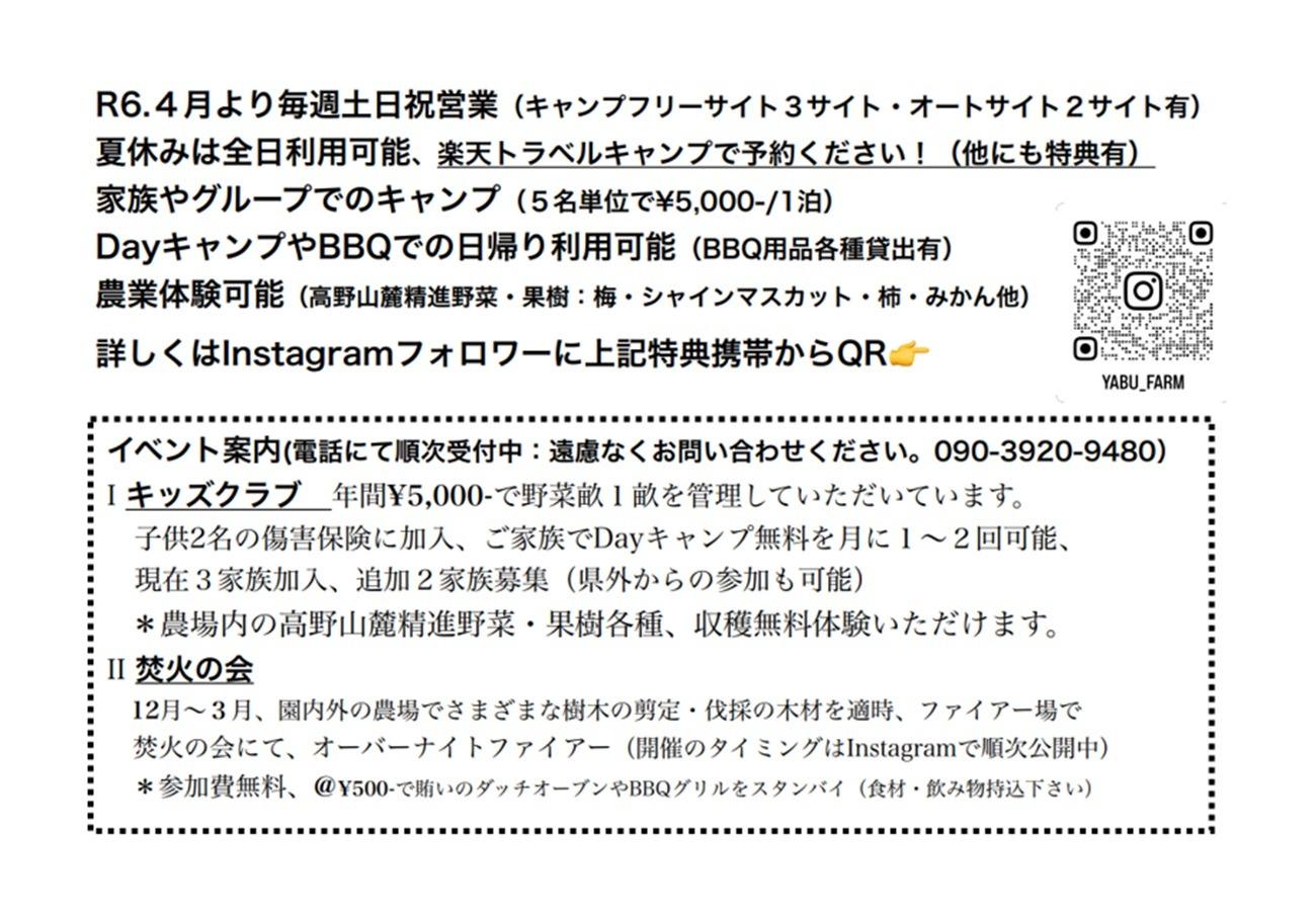 交通のアクセスが良く、広い農場の中に、プライベートスペースのキャンプフィールド。 各サイトに木陰があり涼しく過ごしていただけます♪ フリーサイト1・2・3にはいずれも木陰があり、のんびりと昼寝をお楽しみください。 また、フリーサイト3・オートサイトAの横にはスモモ・ぶどう棚・梅の木のドームがあり 木陰の下で、のんびりとお過ごしください! 元々は地元ボーイスカウトが使っていた土地で、 周りに民家がなく、夜は星空の下キャンプファイアー場で直火が楽しめます。 昼は野菜畑や果樹園の中でのんびり過ごせ、農産物の収穫体験もできます。 農業体験可能(高野山麓精進野菜・果樹:梅・ぶどう・柿・みかん他)♪ #和歌山 #キャンプ #和歌山年越しキャンプ #和歌山穴場キャンプ場