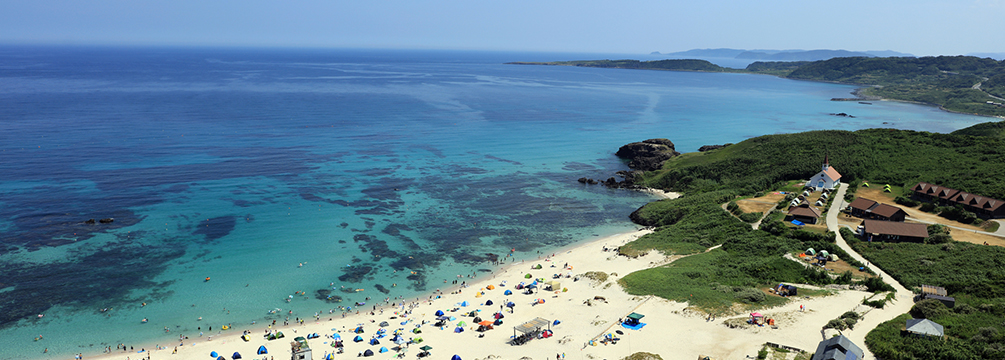海辺でキャンプしたいなら「鳴き砂ビーチうしろはま」! 鳴き砂浜、本州最西端の海を大満喫! 海水を沸かして入る「潮湯治(タラソテラピー...続きを読む >