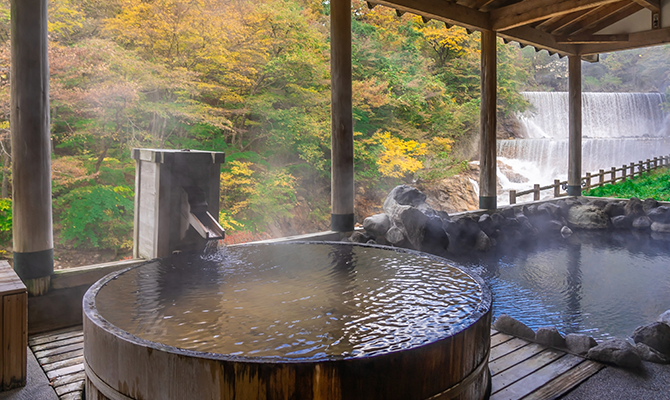 紅葉や雪景色、緑の木々など、四季折々の絶景を感じながらリラックスタイム!日の出や星空を堪能できる露天風呂があることも。